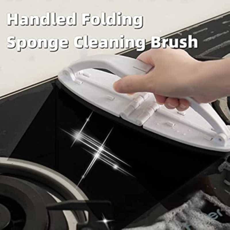 Folding Sponge Cleaning Brush Handled Kitchen Scrubber